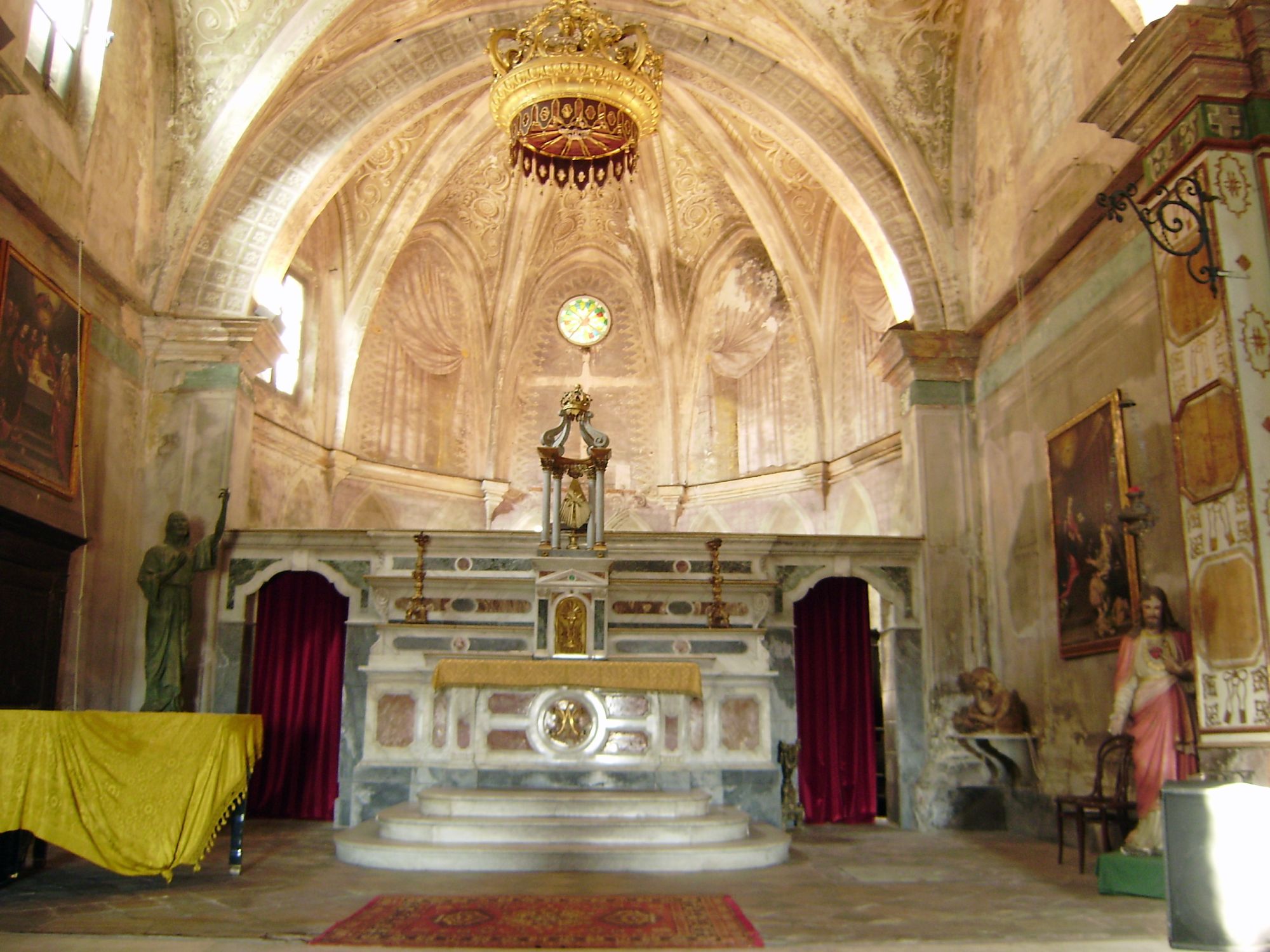 Restauro dell’apparato decorativo dell’area presbiteriale: pareti e plinti con decorazioni del XIX secolo, macchina dell’altare maggiore e pavimentazione lapidea